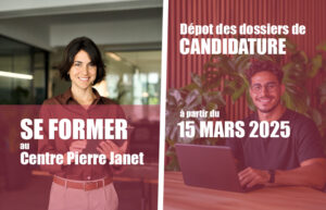 Vous souhaitez intégrer l’un de nos diplômes ? Déposez votre dossier à partir du 15 mars 2026 ! Le Centre Pierre Janet propose des Diplômes Universitaires dans les domaines de la psychologie, de la sexologie, de la prise en charge du psychotraumatisme et en accompagnement thérapeutique. Tous nos contenus pédagogiques